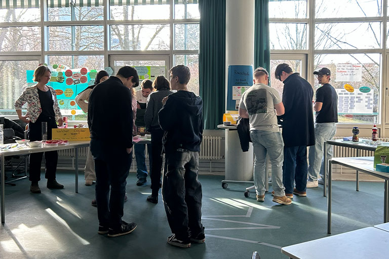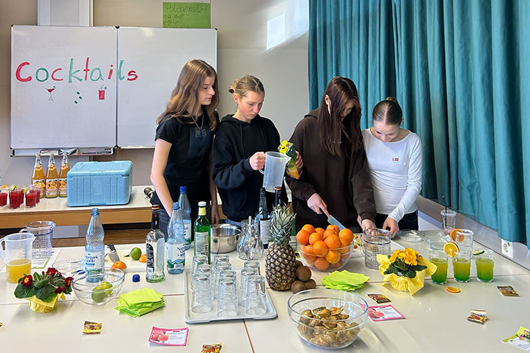 Im Raum der Hauswirtschaft wurde die ganze Bandbreite dieses Arbeitsfeldes präsentiert, welches unter anderem im Berufskolleg für Ernährung und Hauswirtschaft (BKEH) sowie in der Berufsfachschule für Hauswirtschaft (BFH) ein wichtiger Bildungsinhalt ist. Direkt nebenan boten Schüler:innen des sechsjährigen beruflichen Gymnasiums (6ESG) alkoholfreie Cocktails an und standen – gemeinsam mit ihren Lehrkräften – für Fragen zu ihrer Schulart zur Verfügung.